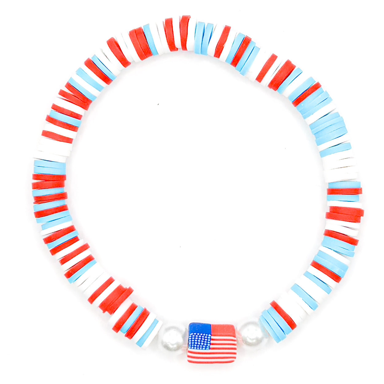 Handmade red white and blue clay beaded bracelet || KellyPrepsterStudio