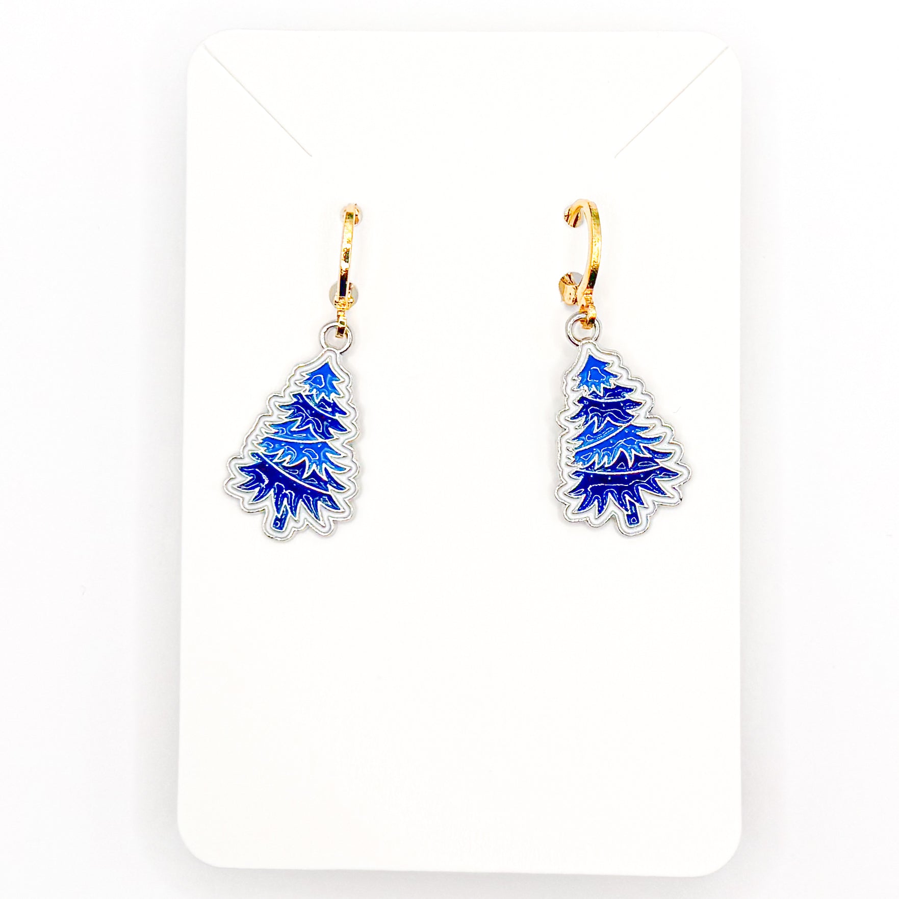 Blue Christmas Trees Huggie Earrings with gold hardware || KellyPrepsterStudio