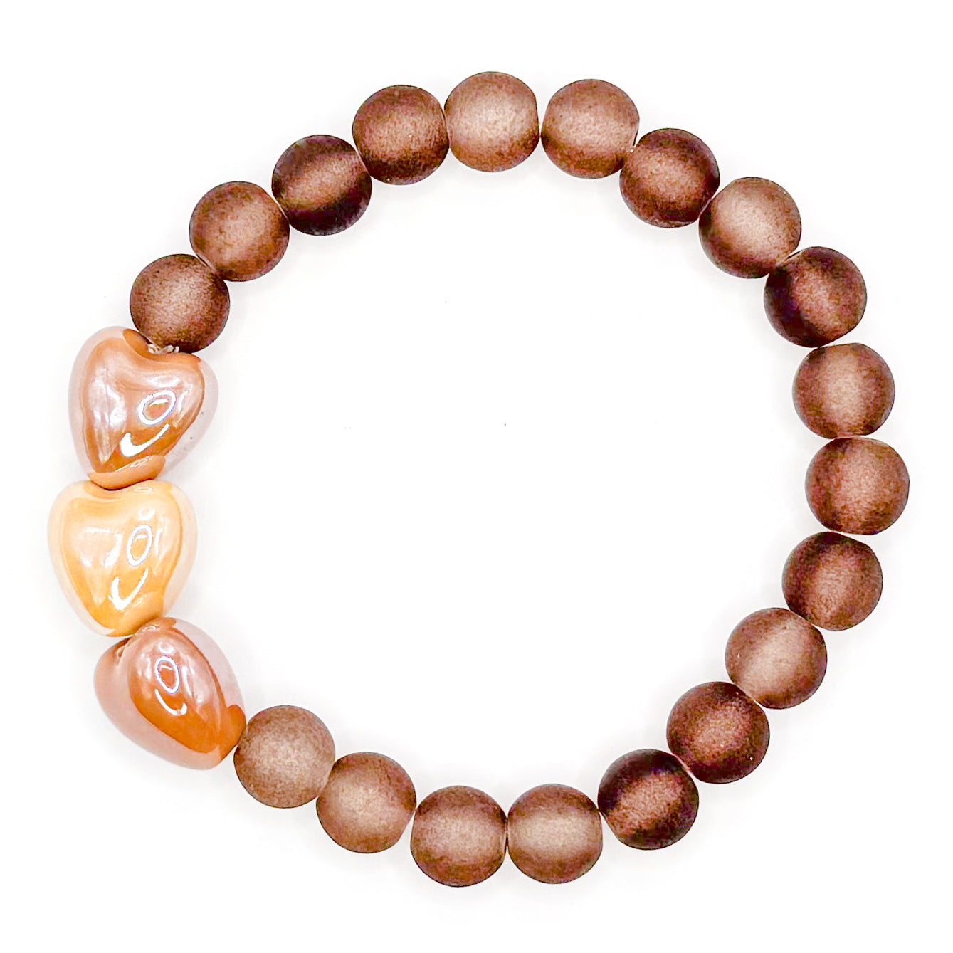 Handmade brown bubble hearts glass beaded bracelet || KellyPrepsterStudio