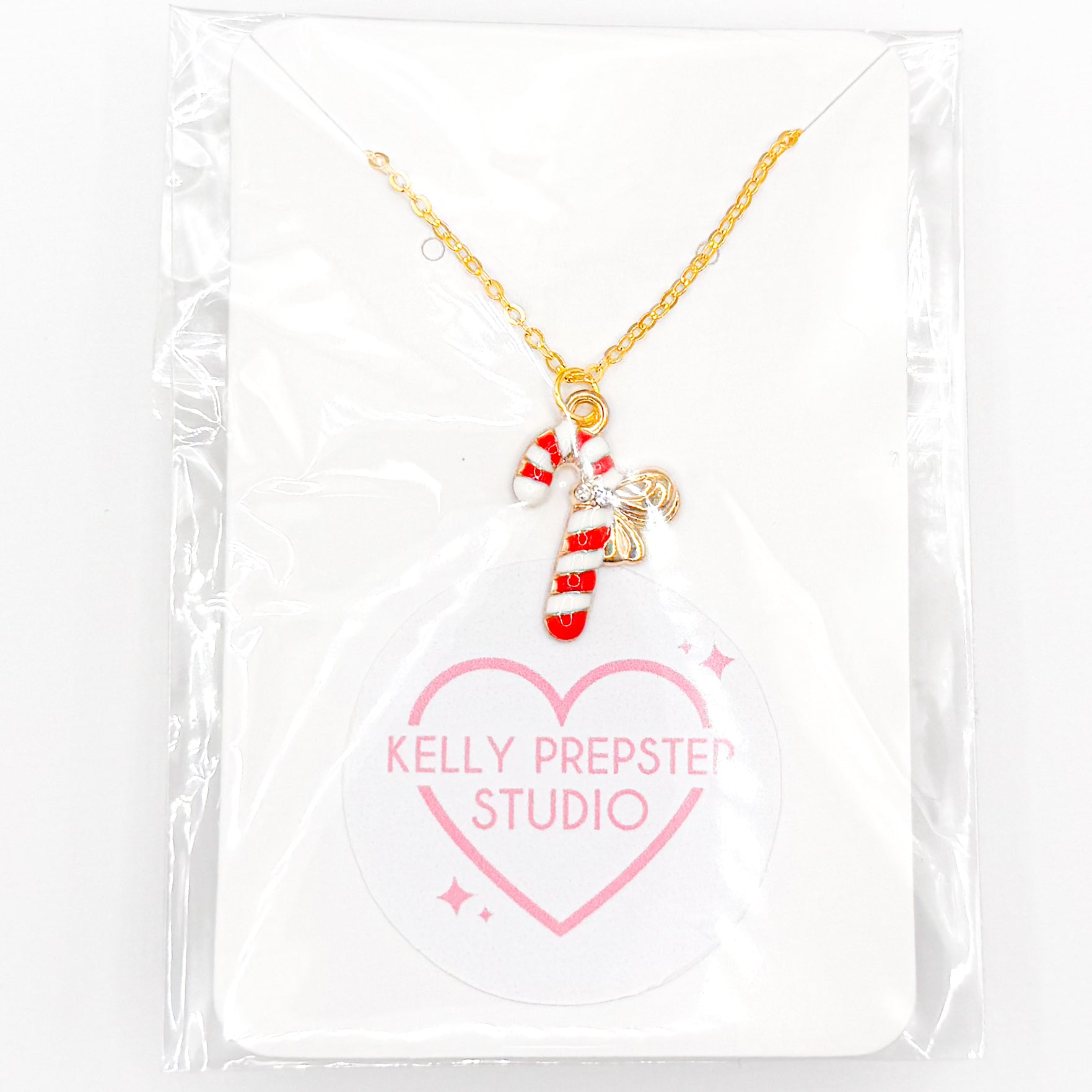Candy Cane Necklace on 18-inch gold chain || KellyPrepsterStudio
