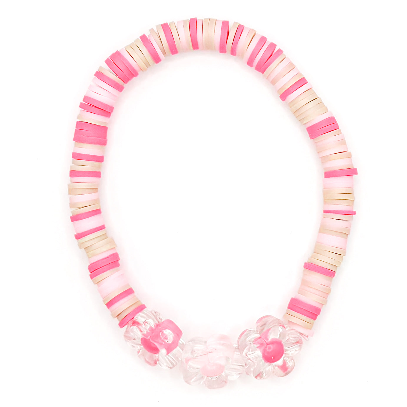 Handmade brown and pink clay beaded bracelet with flower charms || KellyPrepsterStudio