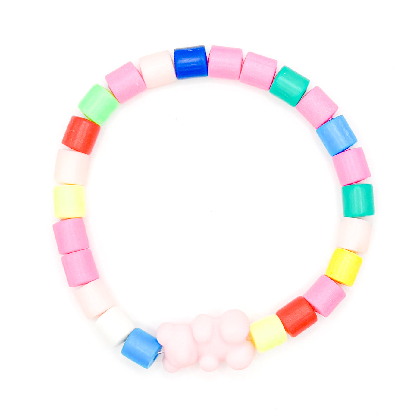 Handmade colorful Beaded Bracelet with pink bear charm || KellyPrepsterStudio
