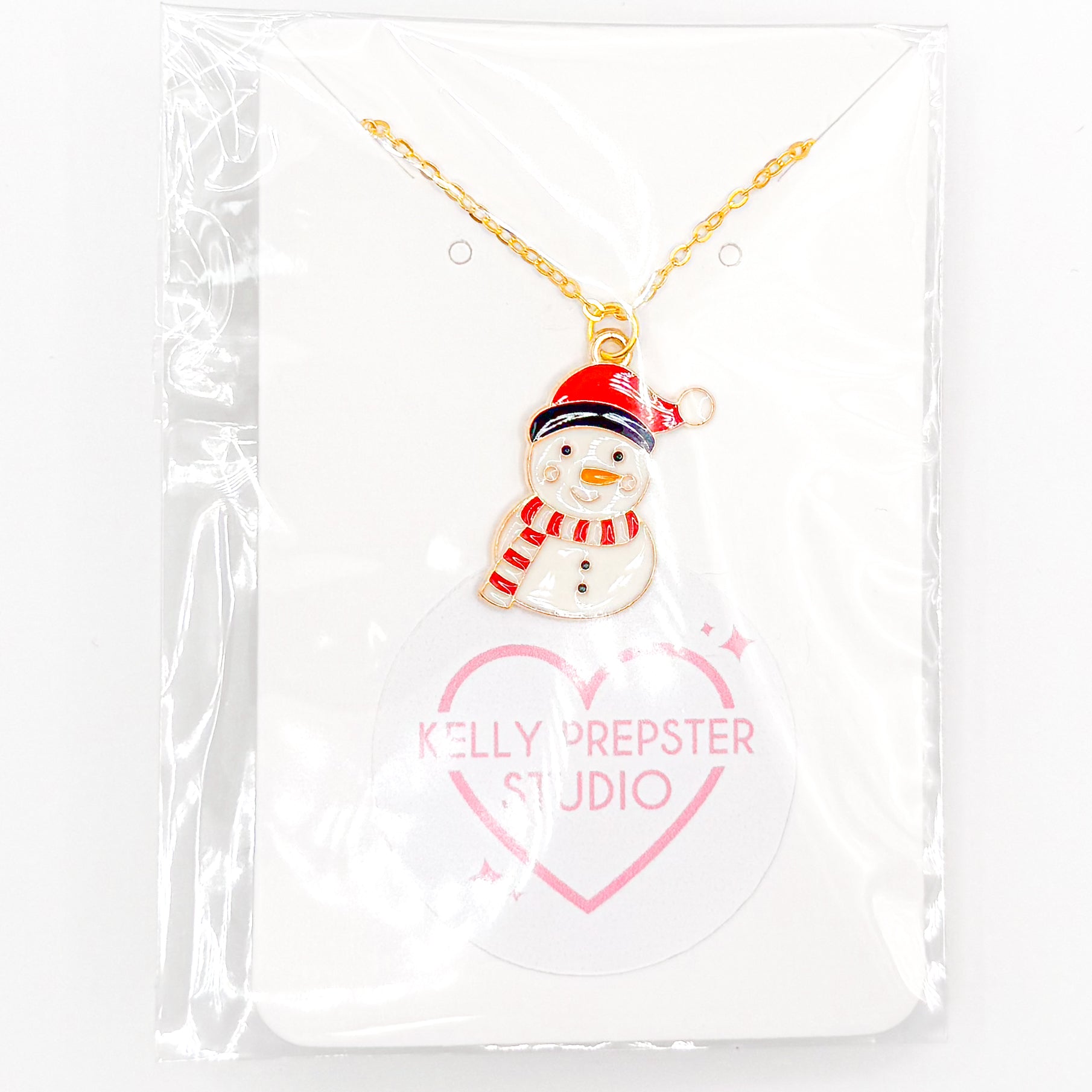 Cozy Snowman Necklace on 18-inch gold chain || KellyPrepsterStudio
