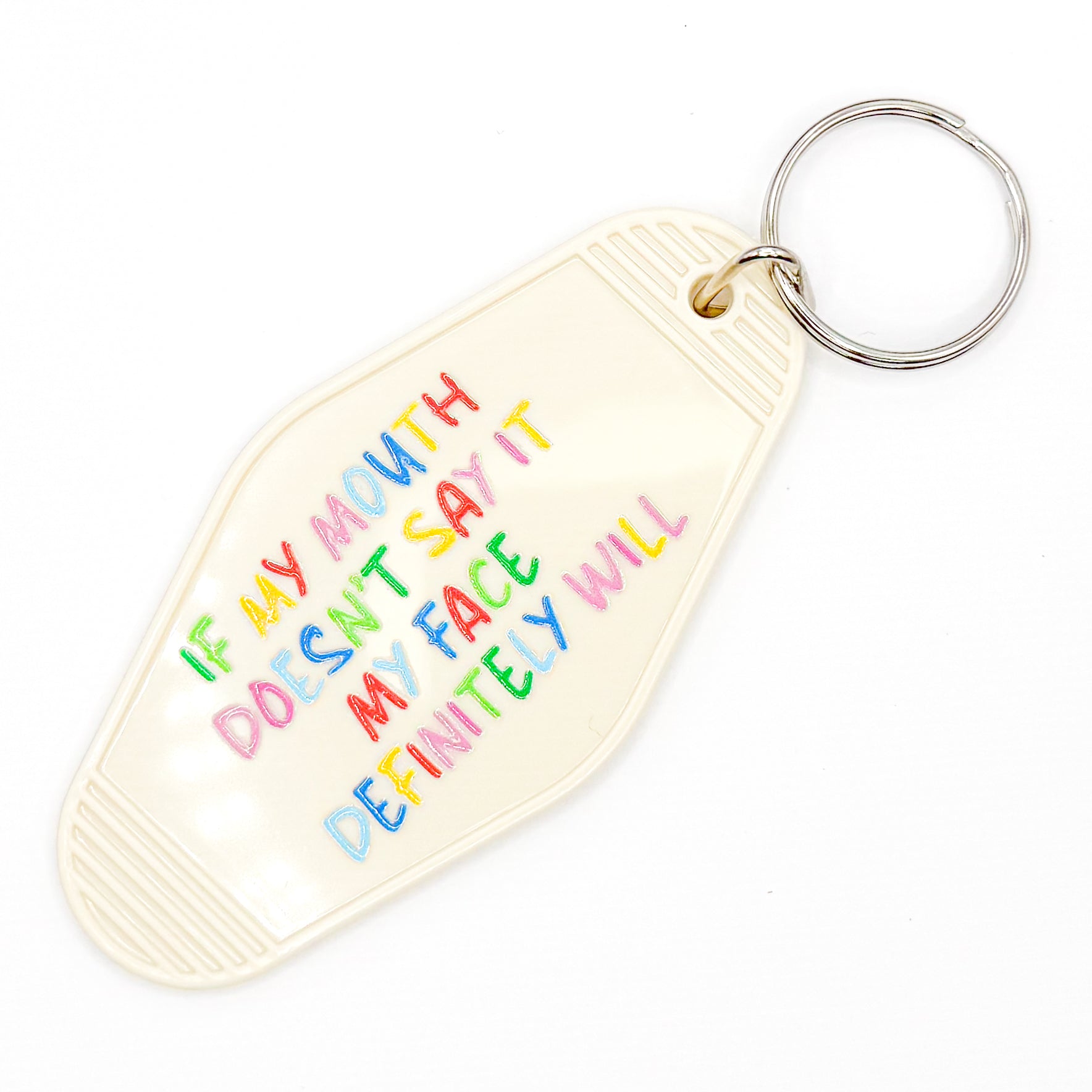 Cream "If My Mouth Doesn't Say it My Face Will" one-sided keychain || KellyPrepsterStudio