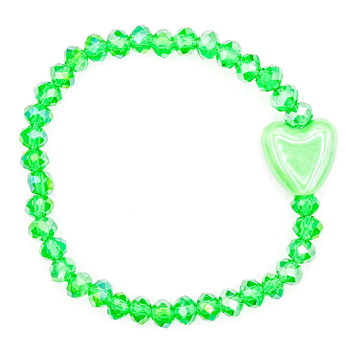 Handmade green heart glass beaded bracelet || KellyPrepsterStudio