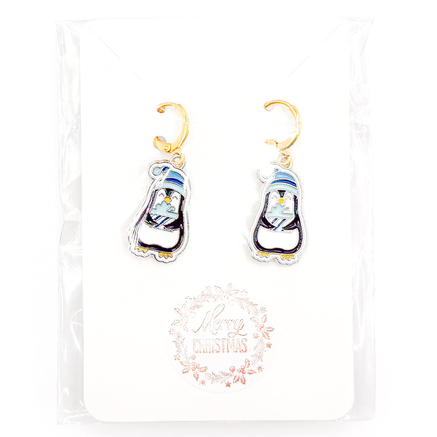 Cutie Little Penguin Huggie Earrings with gold hardware || KellyPrepsterStudio