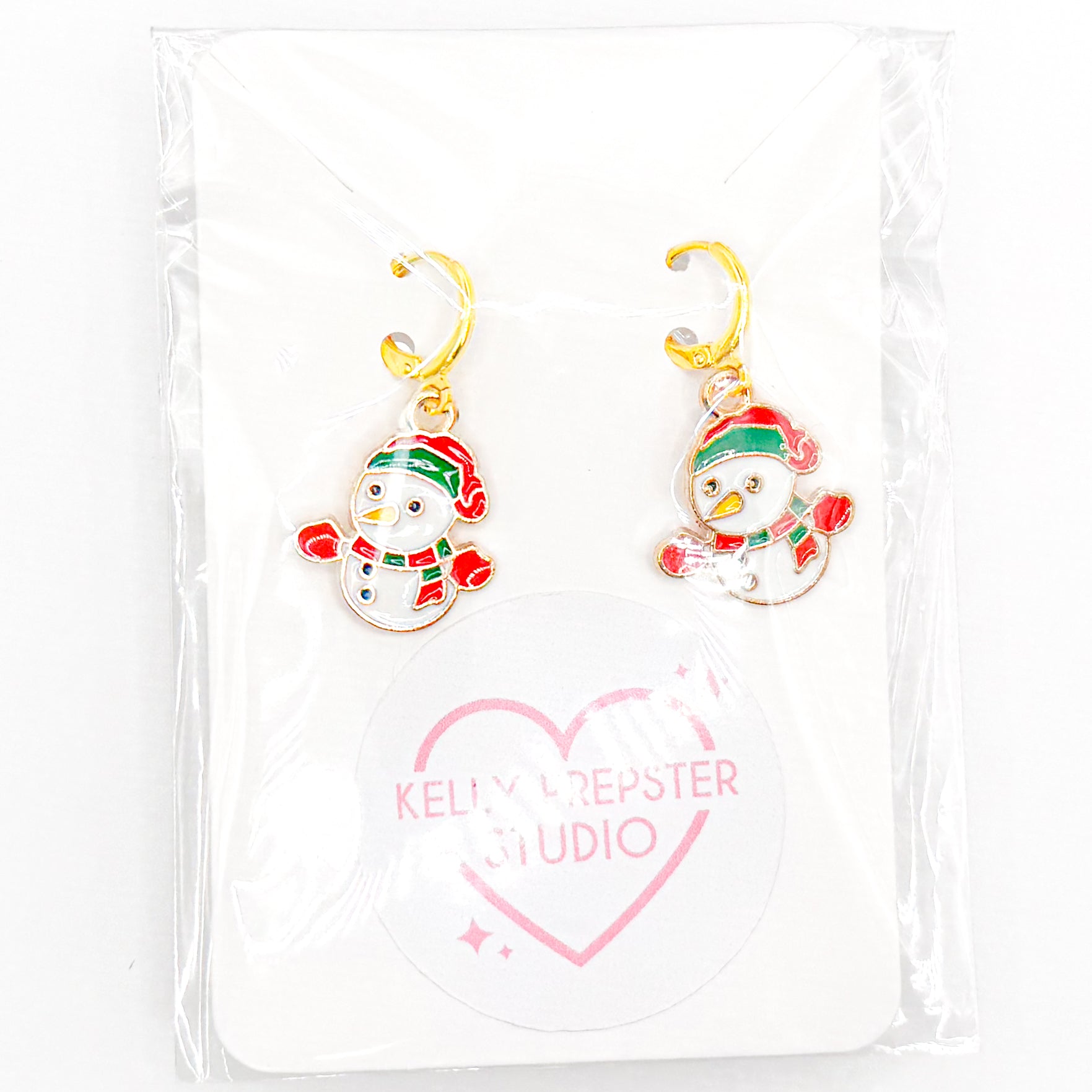 Cutie Little Snowman Huggie Earrings with gold hardware || KellyPrepsterStudio