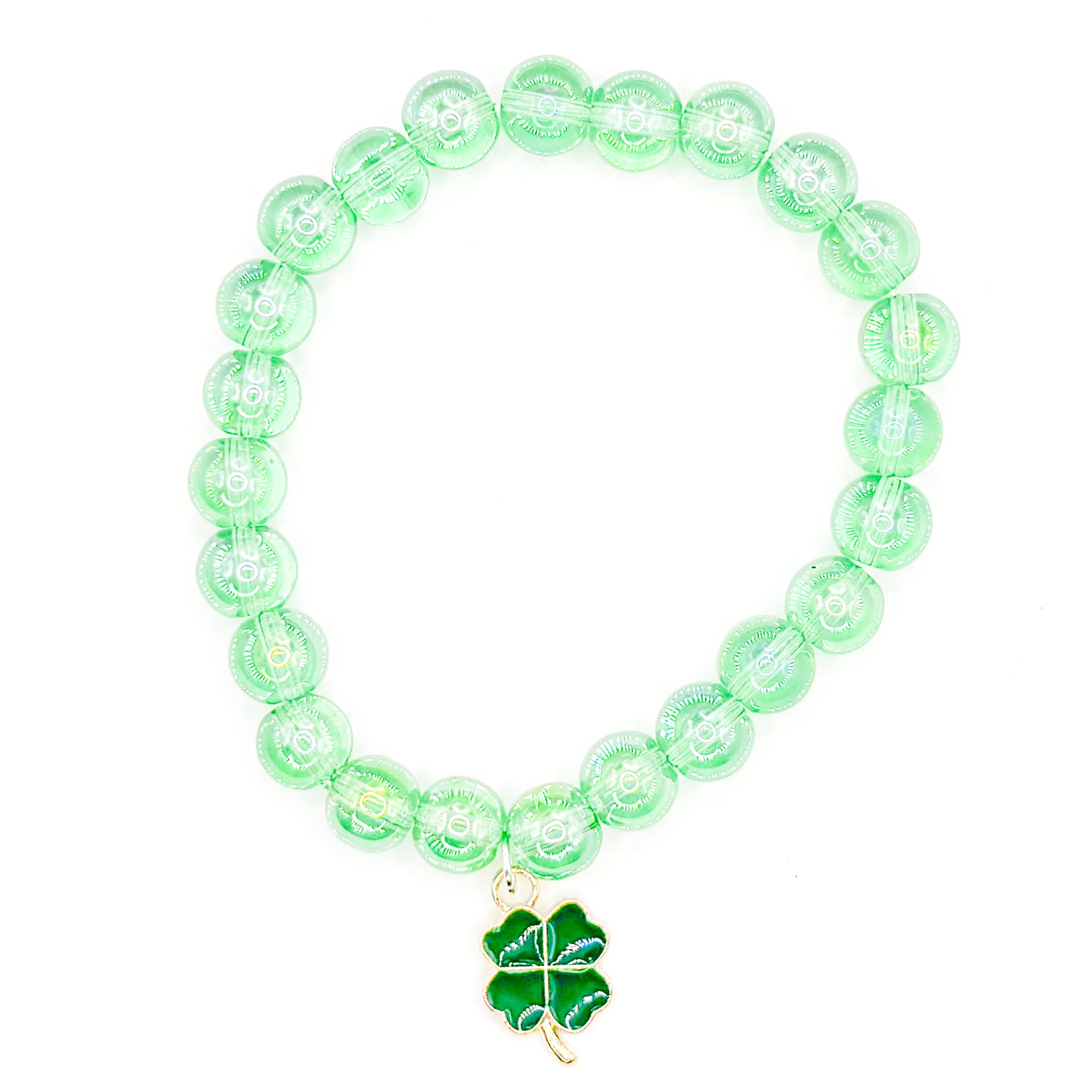 Handmade dark green shamrock glass beaded bracelet || KellyPrepsterStudio