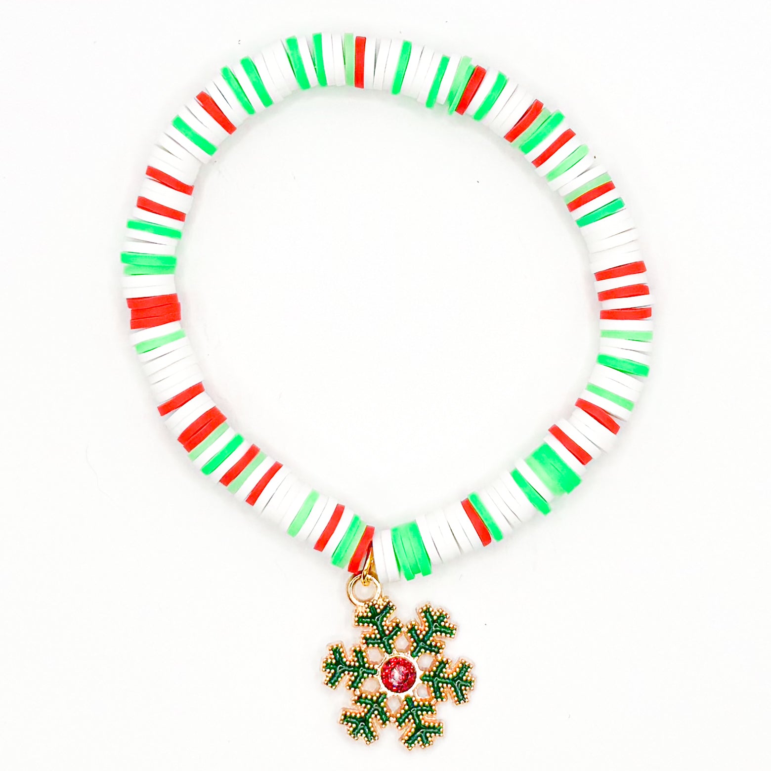 Handmade red, white, and green clay beaded bracelet || KellyPrepsterStudio
