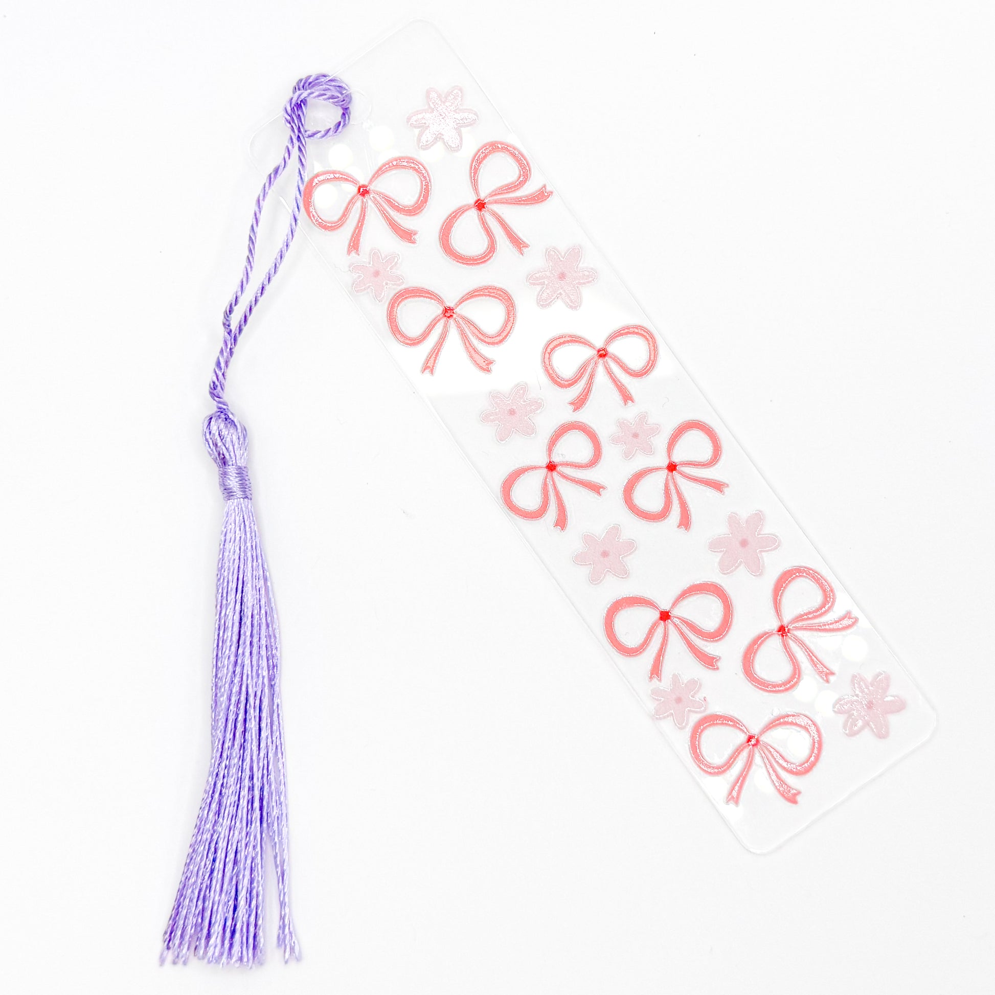 Flowers and Bows one-sided acrylic bookmark with tassel || KellyPrepsterStudio