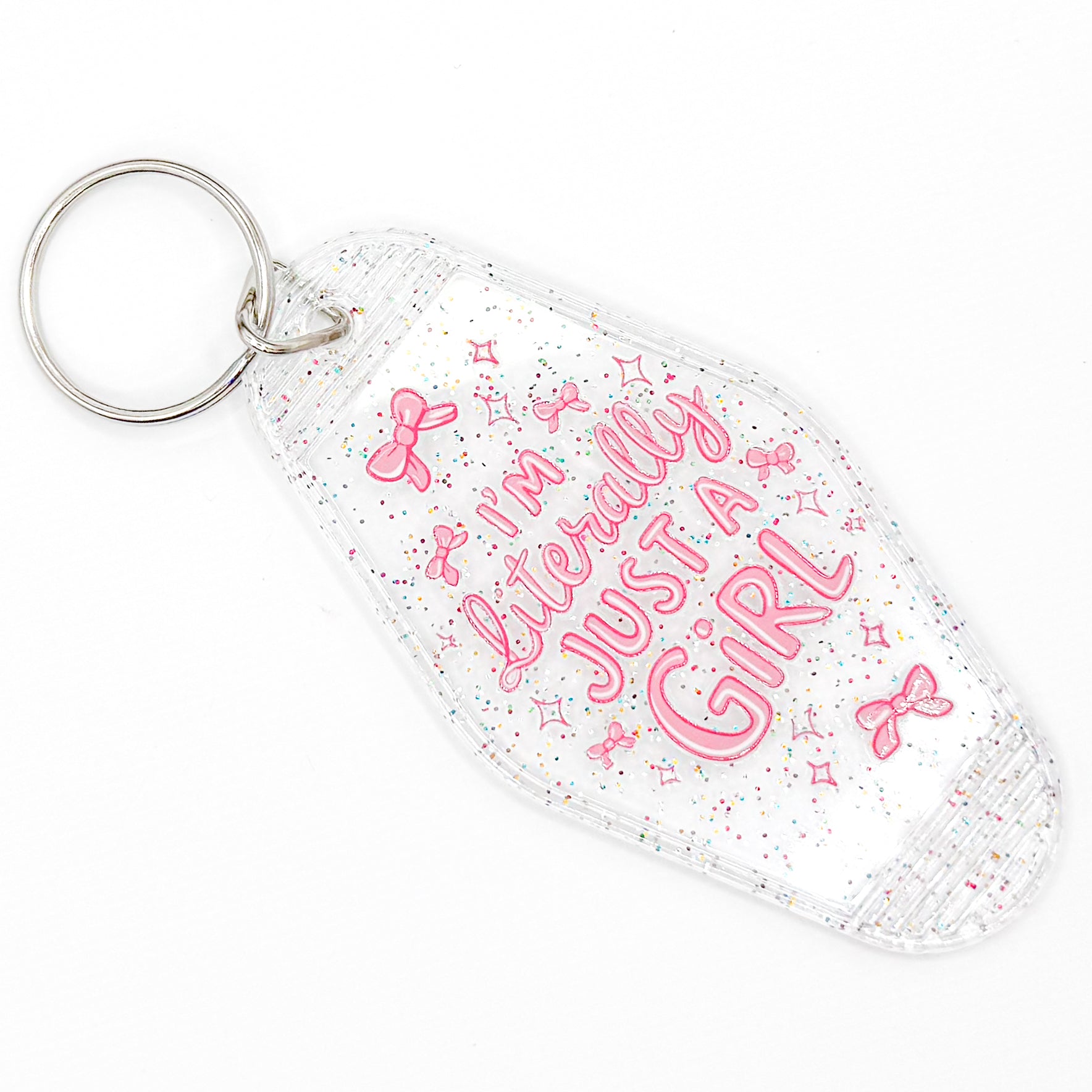Glitter "I'm Literally Just A Girl" one-sided keychain || KellyPrepsterStudio