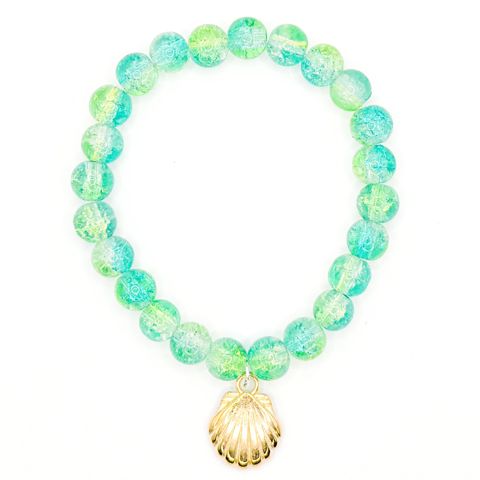 Handmade gold water shell glass beaded bracelet || KellyPrepsterStudio