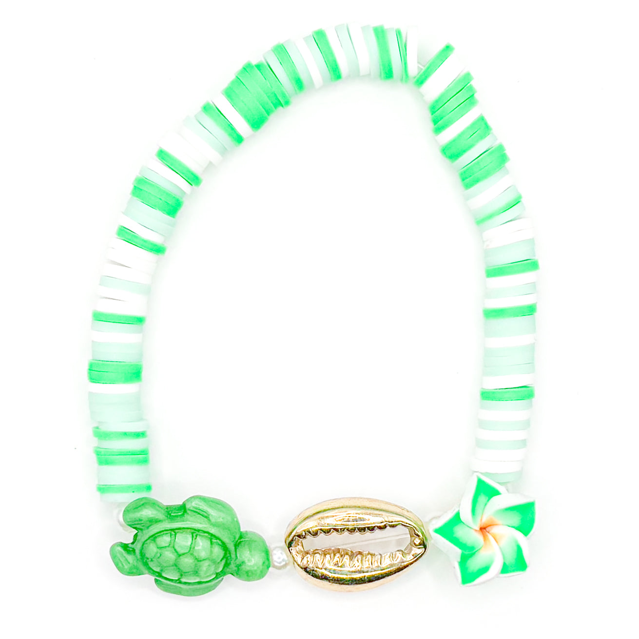 Handmade green aloha clay beaded bracelet || KellyPrepsterStudio
