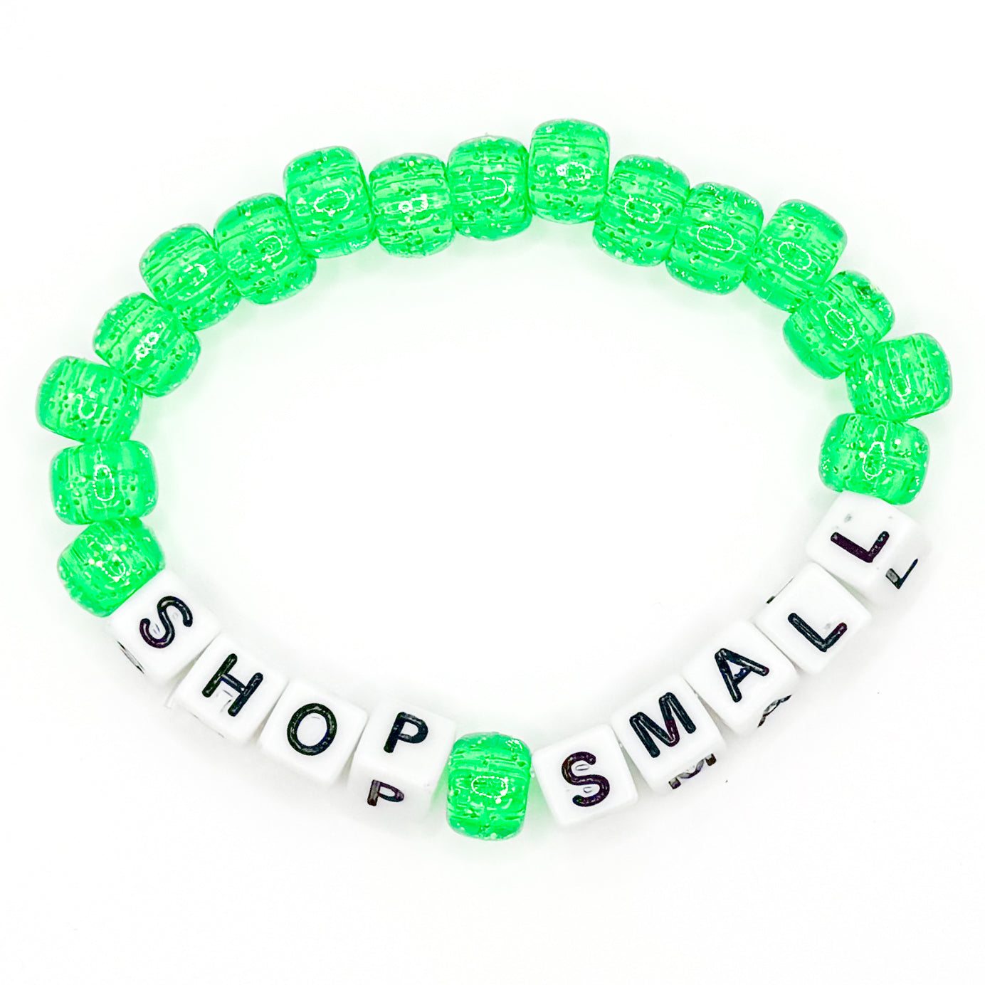 Green "Shop Small" Beaded Bracelet
