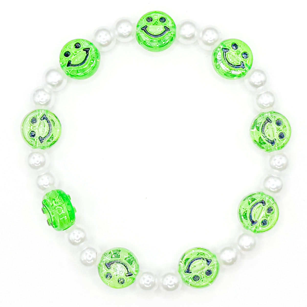 Handmade green smiles beaded bracelet || KellyPrepsterStudio