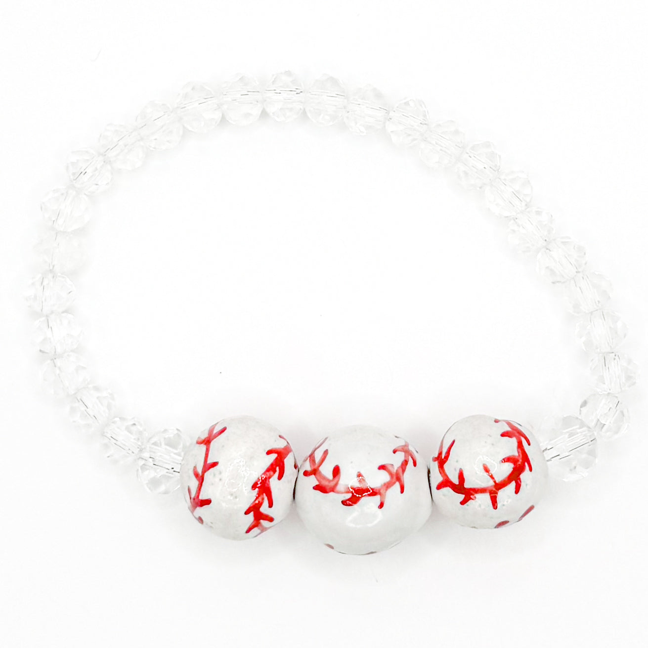 Handmade clear baseball glass beaded bracelet || KellyPrepsterStudio