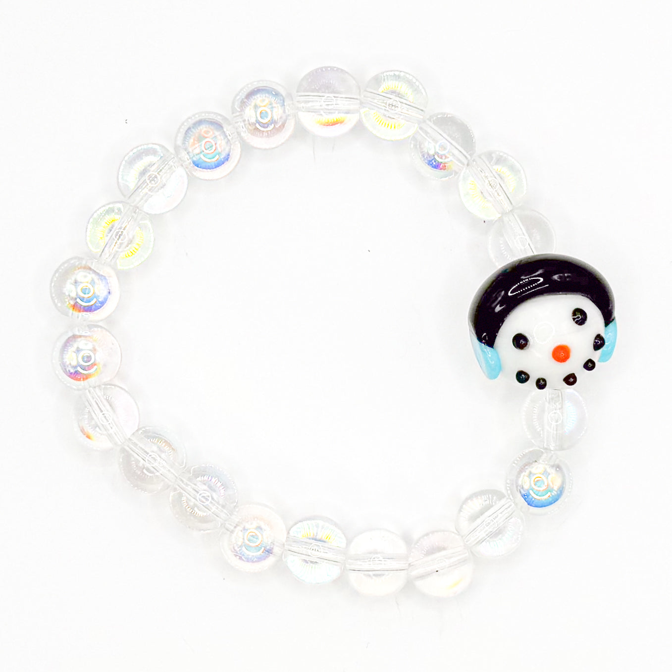 Handmade holographic snowman glass beaded bracelet || KellyPrepsterStudio