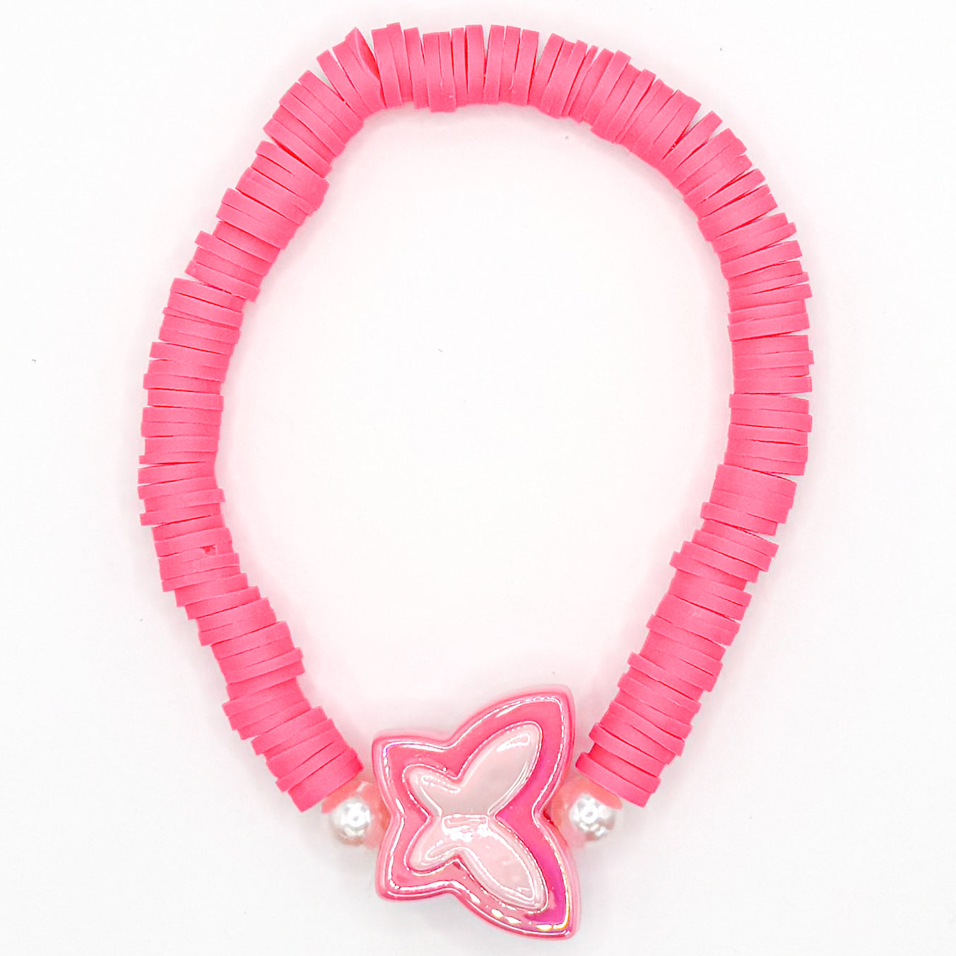Handmade pink clay beaded bracelet || KellyPrepsterStudio
