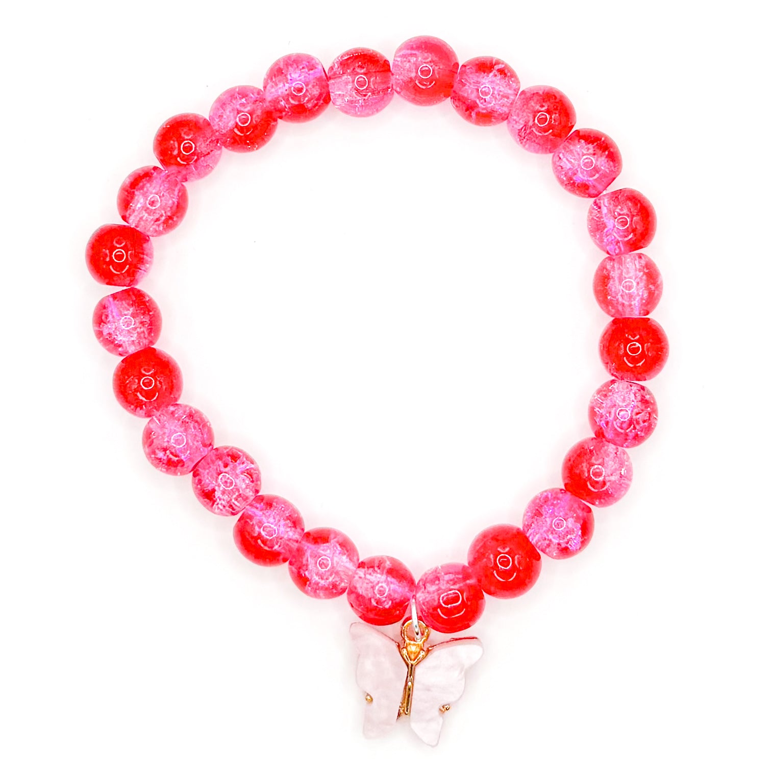 Handmade hot pink butterfly glass beaded bracelet || KellyPrepsterStudio
