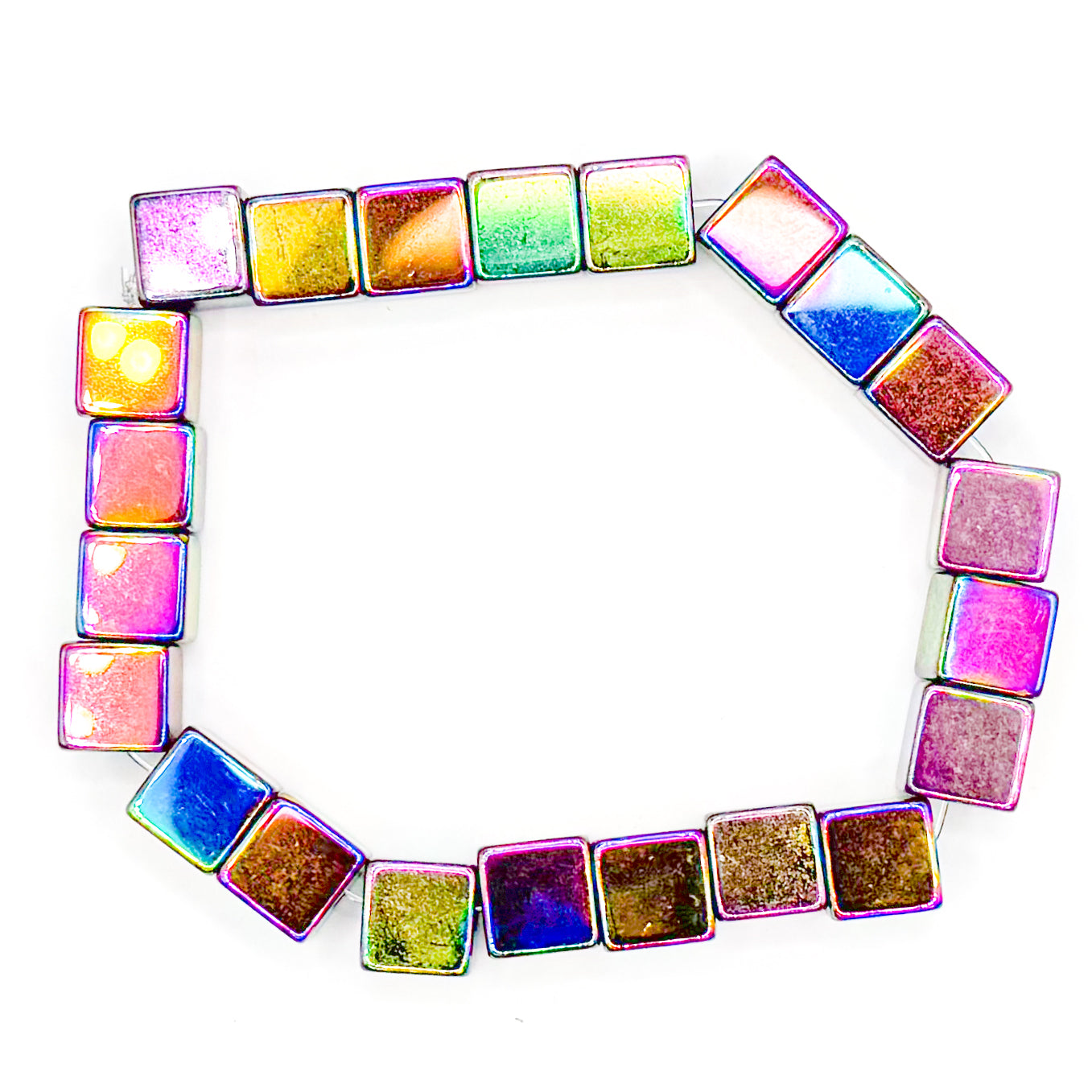 Jumbo Cube Holographic Glass Beaded Bracelet