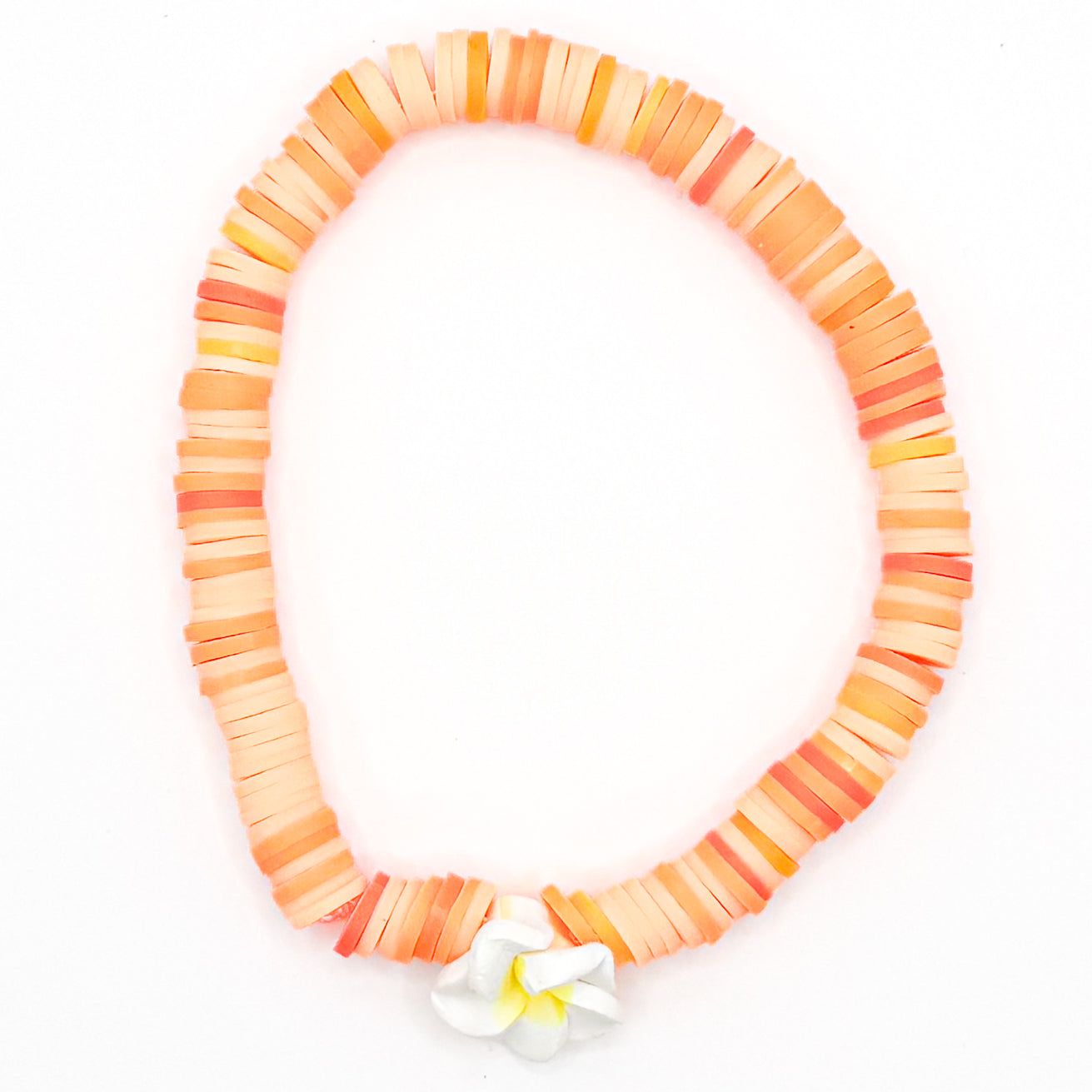 Handmade orange aloha flower clay beaded bracelet || KellyPrepsterStudio