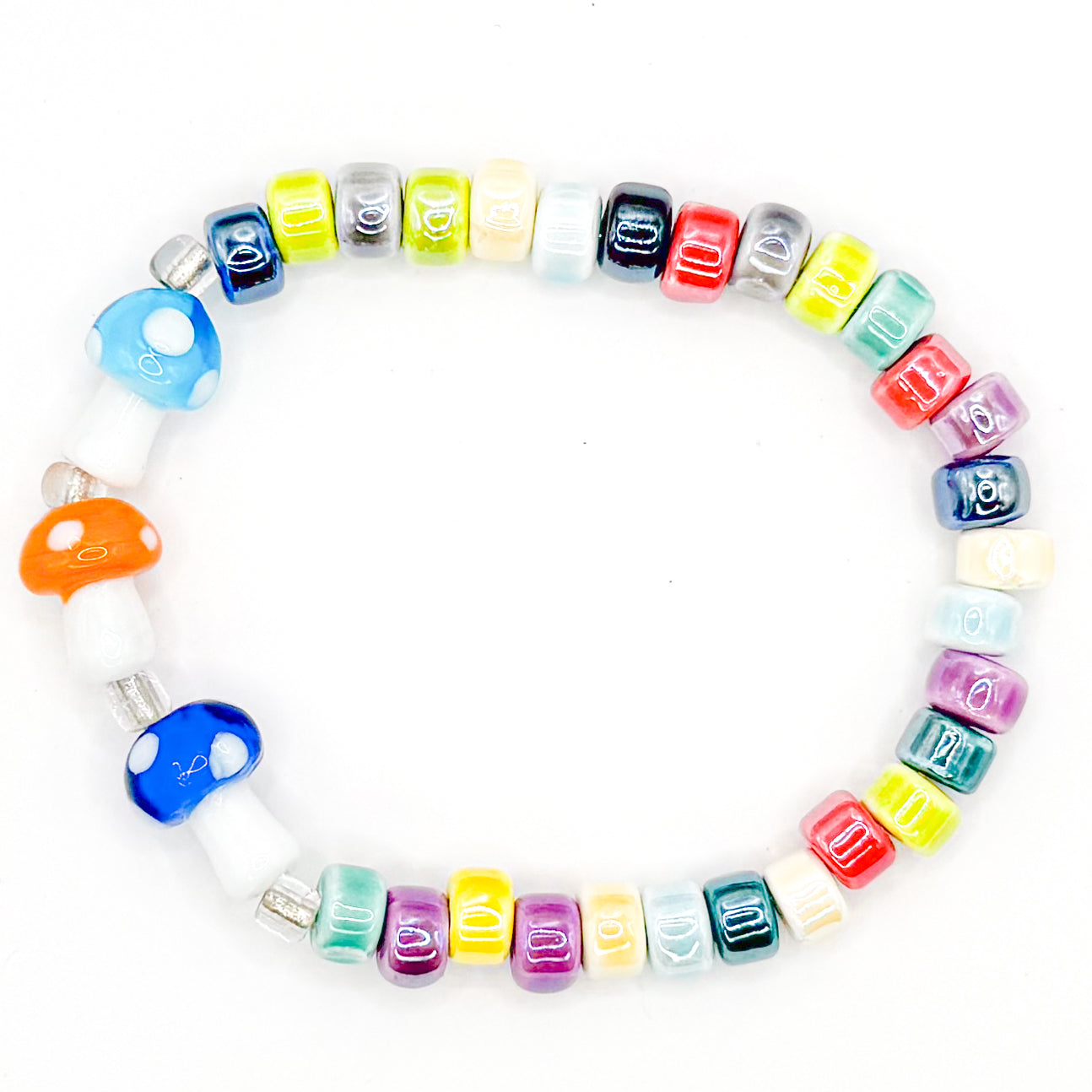 Handmade pastel mushroom glass beaded bracelet || KellyPrepsterStudio