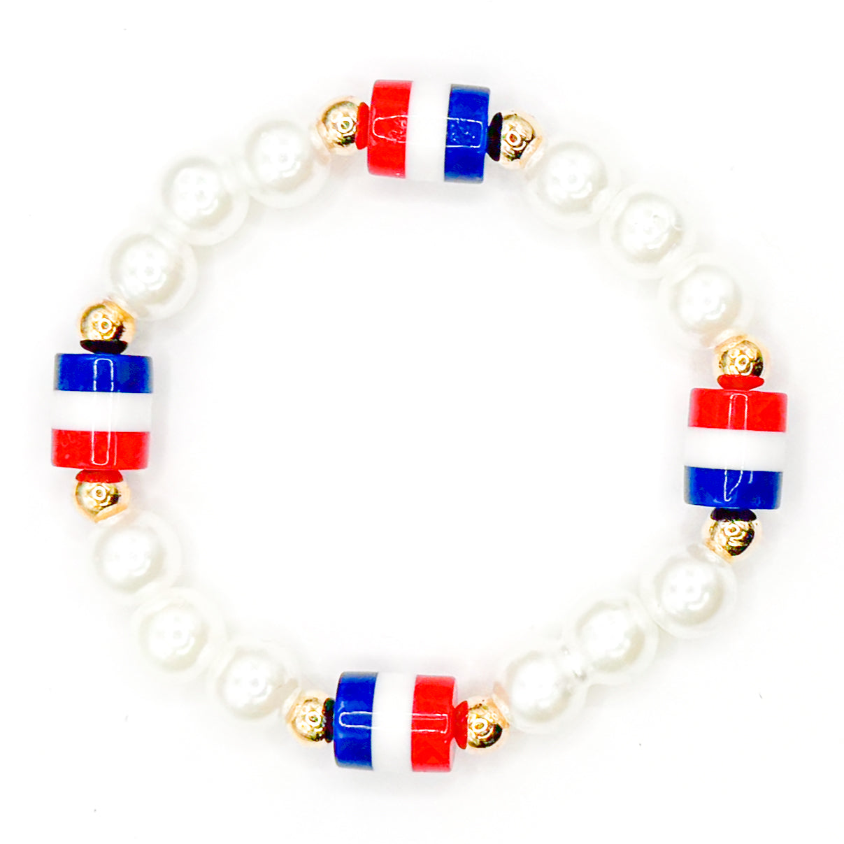 Handmade patriotic pearls beaded bracelet || KellyPrepsterStudio