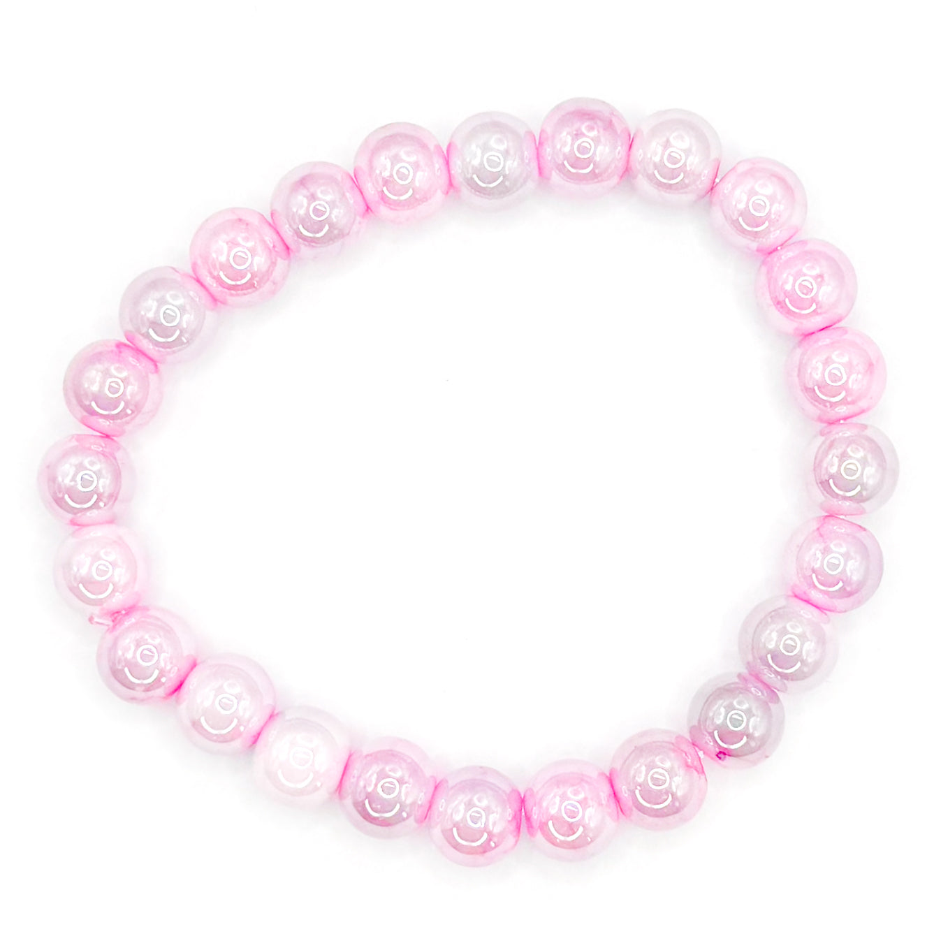 Handmade pink and grey glass beaded bracelet || KellyPrepsterStudio