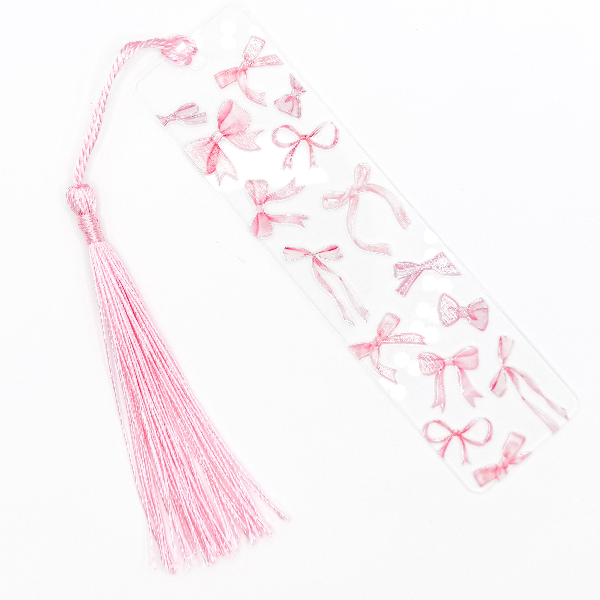 Pink bows one-sided acrylic bookmark with tassel || KellyPrepsterStudio