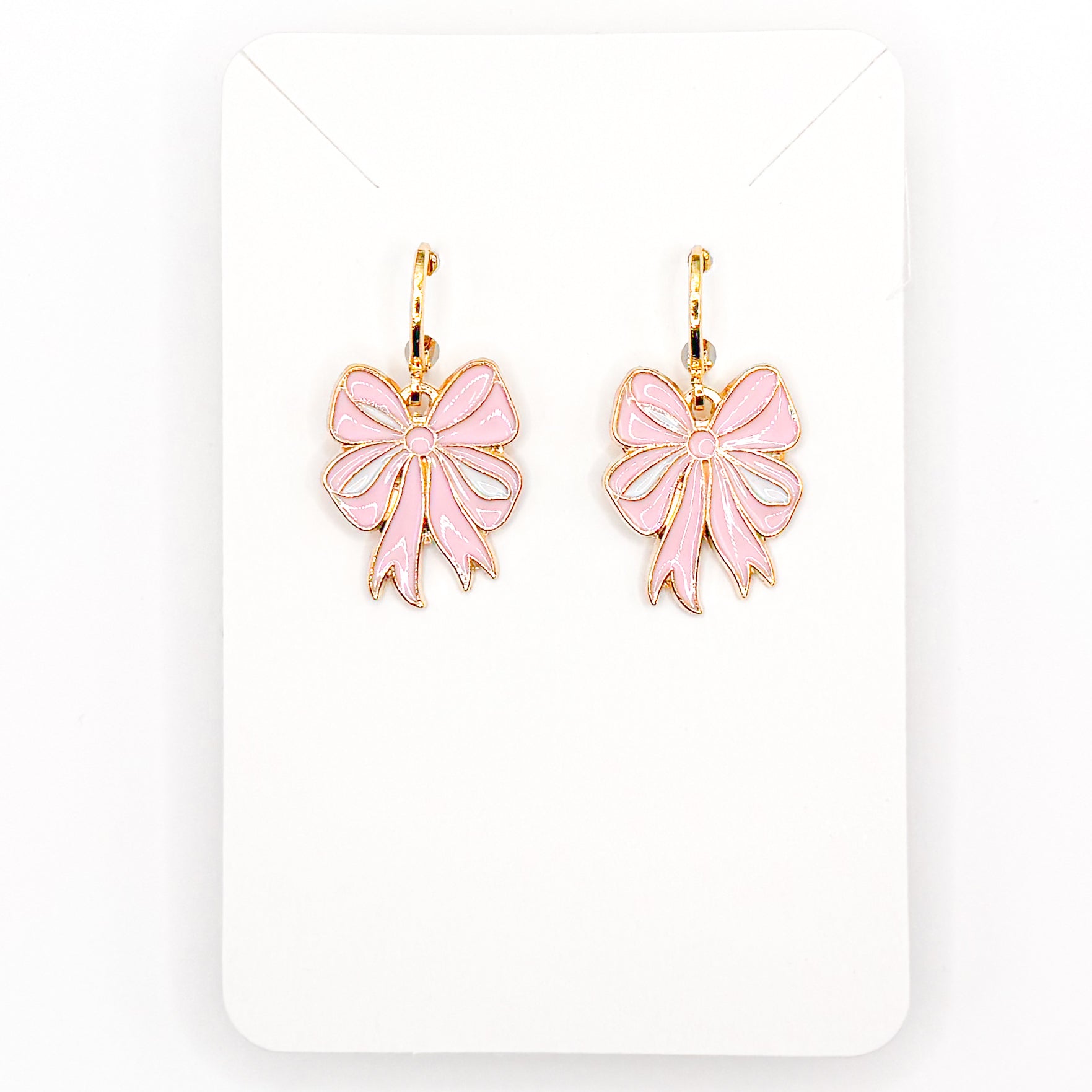Pink Bows Huggie Earrings with gold hardware || KellyPrepsterStudio