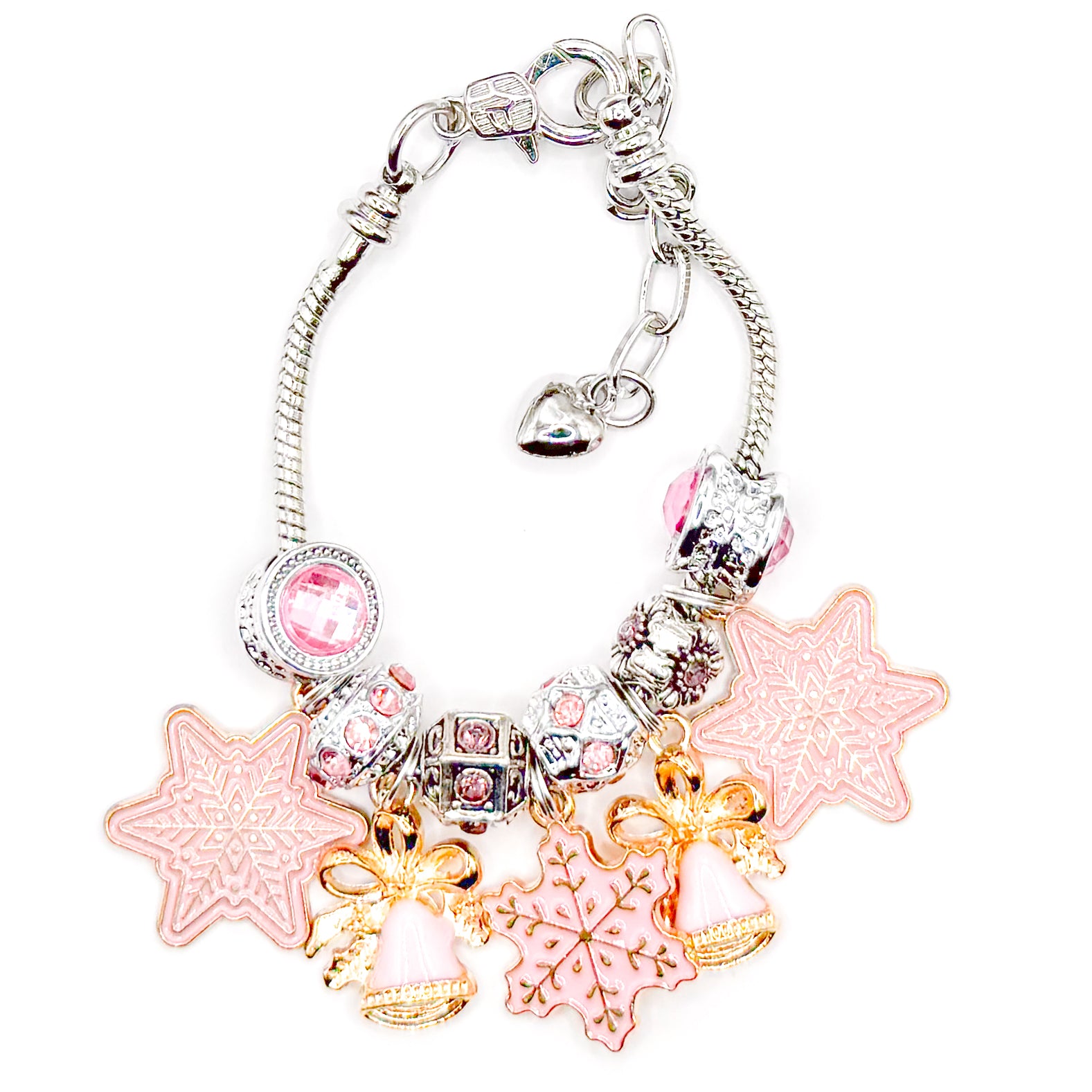 Handmade European charm bracelet with five charms and six European beads on an adjustable silver chain || KellyPrepsterStudio