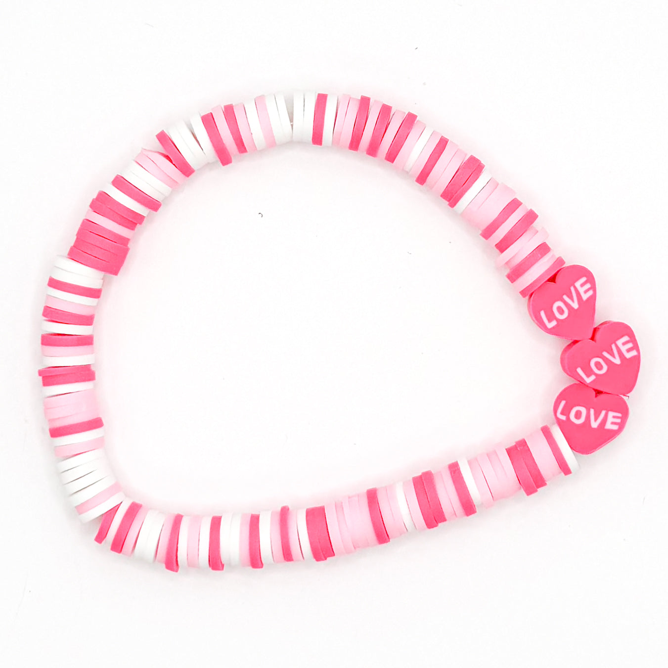 Strawberry Milkshake Love Hearts Clay Beaded Bracelets