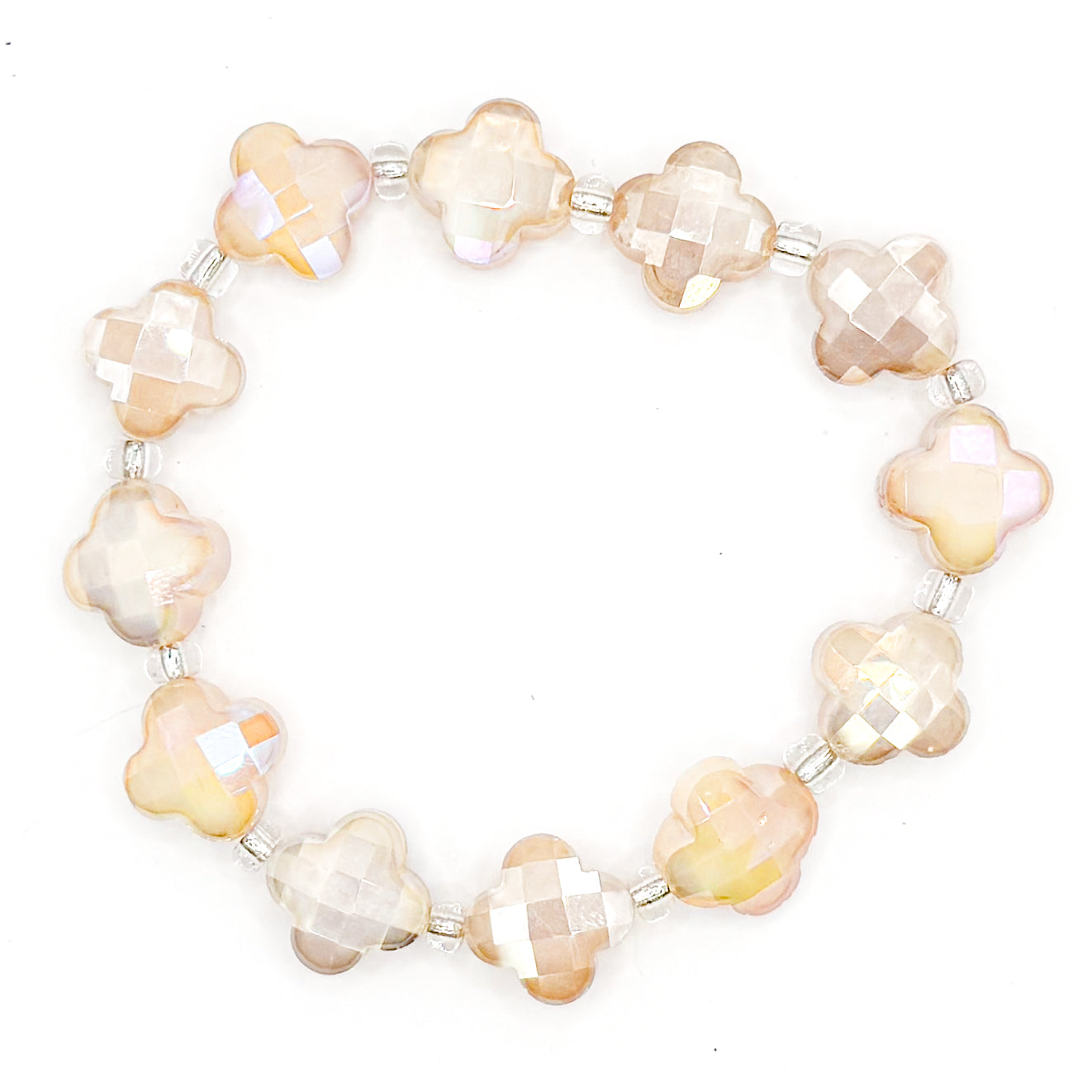 Tan Preppy Sparkle Glass Beaded Bracelet