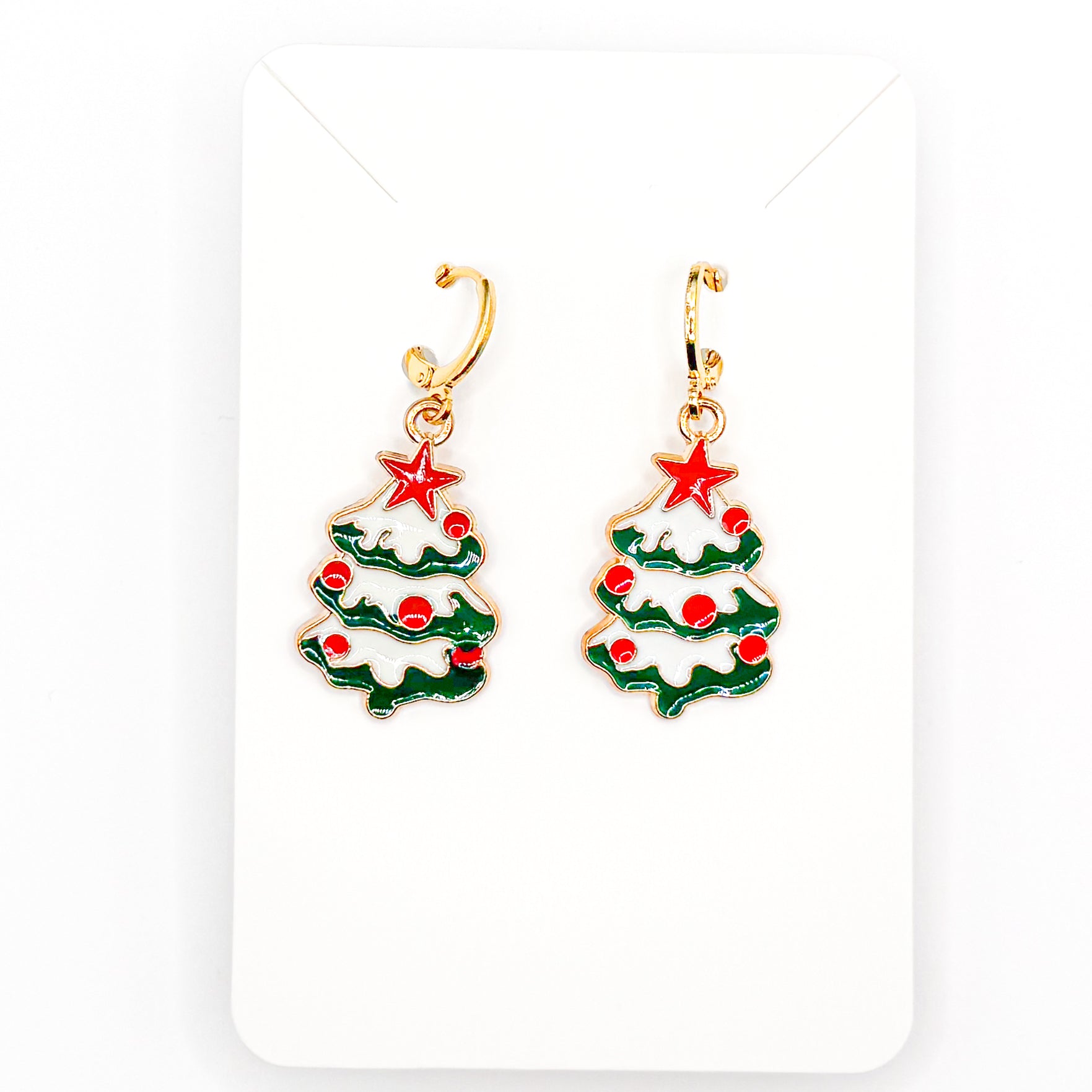 White Christmas Huggie Earrings with gold hardware || KellyPrepsterStudio